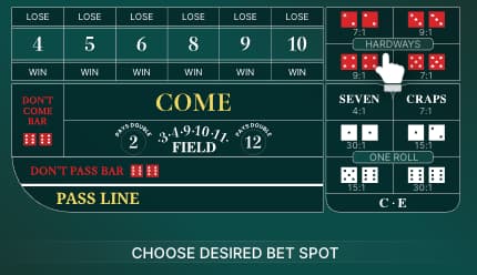 Mas para tornar seu jogo um pouco mais emocionante, Você pode considerar fazer apostas adicionais nos números individuais de 4 a 10. Isso lhe proporcionará oportunidades vencedoras significativas sem muito risco, Especialmente se você apostar o número do ponto e vencer dele.