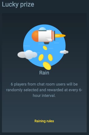 Quando você estiver ativo, mas não necessariamente apenas precisa de algumas mensagens, terá a chance de receber a chuva de bate -papo. Se você ainda não sabe, a chuva de bate -papo é um bot que recompensa 6 jogadores diferentes, a cada 6 horas, dando -lhes uma quantidade aleatória de criptomoeda aleatória. Não espere toneladas de toneladas de BTC.