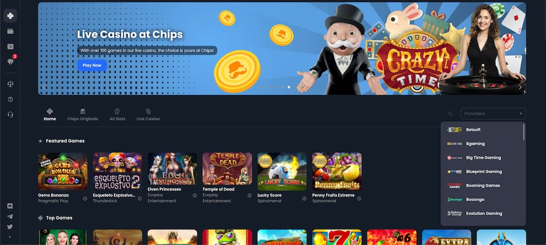 Claro, o cassino chips.gg não pode perder esta oportunidade de atrair jogadores para que eles estejam em parceria com o topo do principais provedores de software de cassino, como Evolution, OneTouch Live e Pragmatic Play ao vivo. Além de todos os desenvolvedores para máquinas caça -níqueis, para citar alguns: jogos de grande tempo, plantas, nolimit city, bgaming, jogos de tigres vermelhos, brincadeiras pragmáticas e Thunderkick (a lista continua - verifique a tabela nas informações essenciais para mais ).