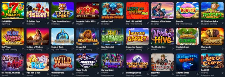 | Provedores de software de cassino | NEON VALLEY, Netent, Nolimit City, OneTouch, Oryx Gaming, Pgsoft, Playson, Play Pragmático, Push Gaming, Quickspin, Tiger Vermelho, Relaxe Jogos, Gaming de Revolver, Spadegaming, Spinomenal, Stormcraft, Swintt, Thunderkick, Horn Tom, Tripleks, triplos, Truelab, Wazdan |