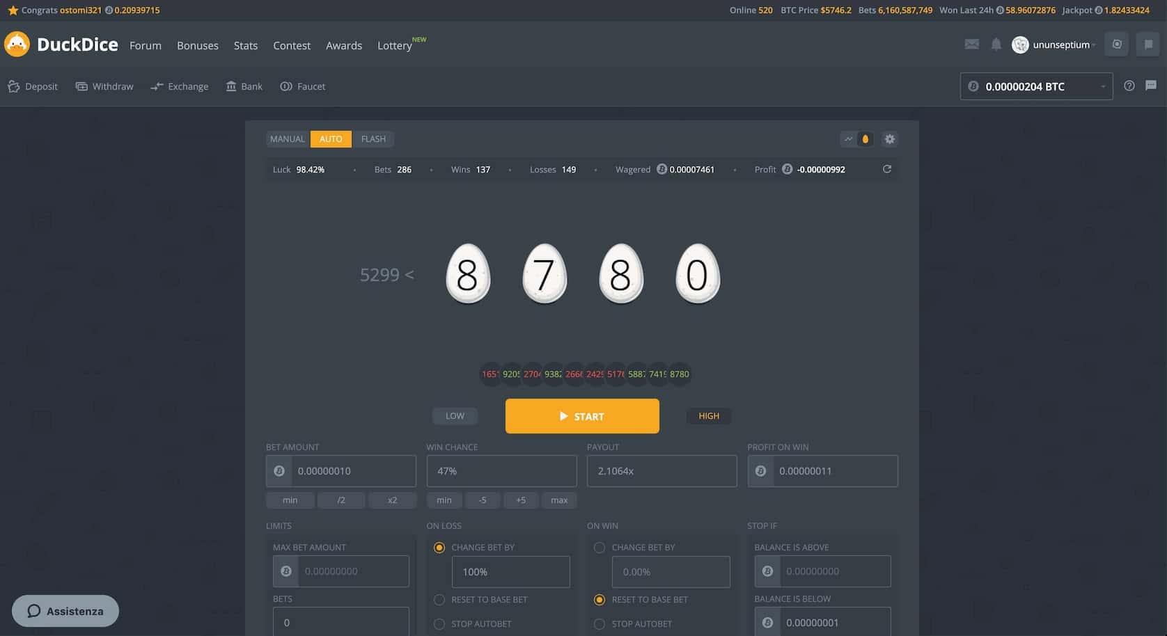 Duckdice é um dos poucos cassinos dedicados a um jogo de dados