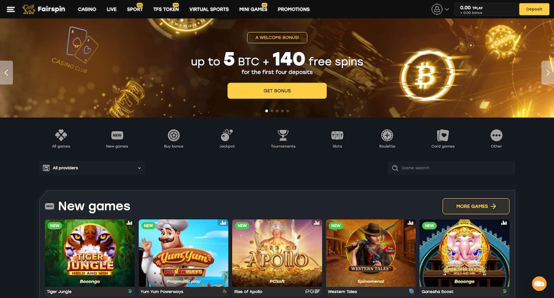 Como mencionado anteriormente, alguns dos maiores provedores de jogos são parceiros do ecossistema Trueplay, que permite que cassinos como a Fairspin tenham slots tão bitcoin e Ethereum no site. Enquanto a evolução garante o Bitcoin Live Casino, o Pragmatic Play e o Netent, e outros estão garantindo que você tenha máquinas de caça -níqueis suficientes on -line para satisfazer todas as suas necessidades.