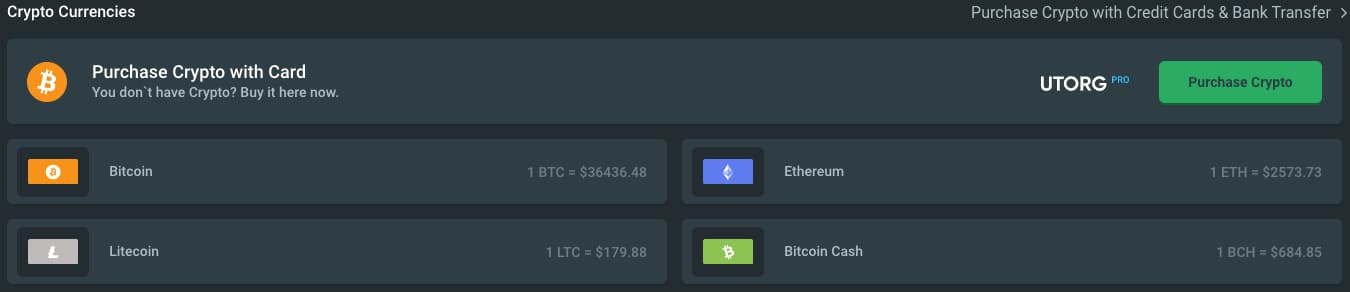 Além disso, você tem a capacidade de comprar cartões -presente (de apenas 5 USD a 250USD) com outros provedores de pagamento, como PayPal, PaysAfecard, Trustly, Google Pay. Por fim, você tem uma ótima adição, que é a capacidade de comprar criptomoedas diretamente na plataforma. Tudo isso torna os métodos de pagamento com depositar e retirar muito mais fáceis e rápidos.