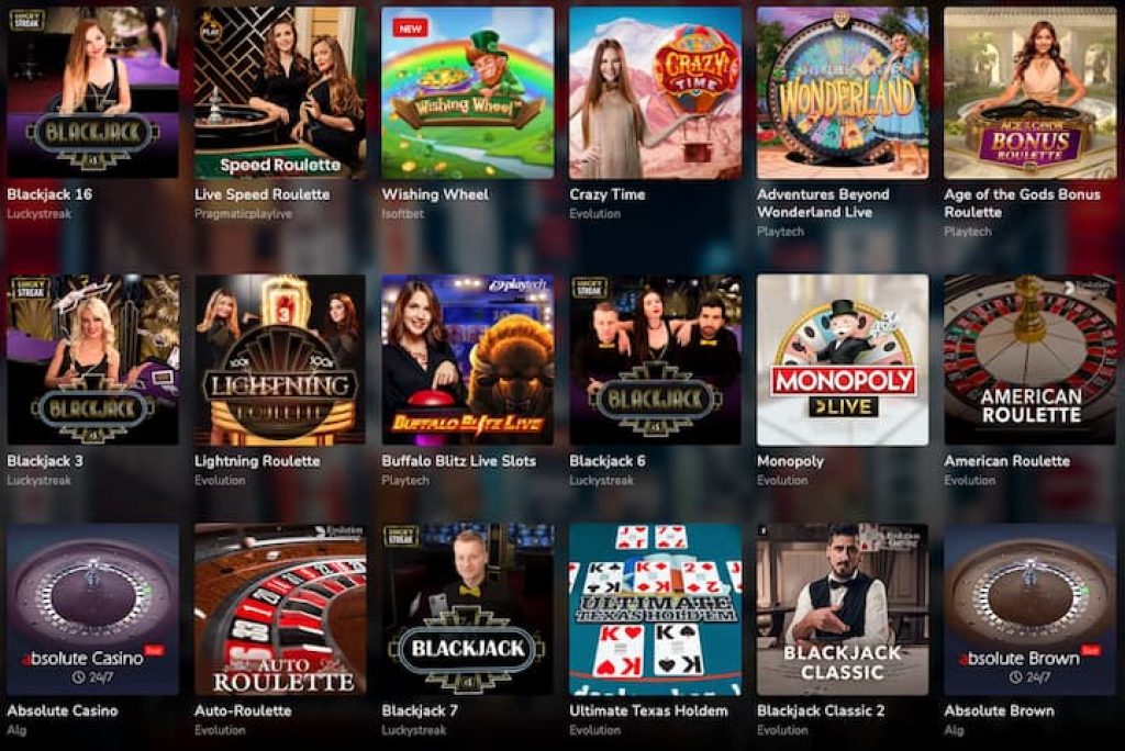 | Provedores de jogos: | Absolute Live Gaming, Amatic, ATMOSFERA, Authentic Gaming, Belatra, BGaming, Quickfire, Booming, Bsg, Hub88, EGT, ELK, Endorphina, Evolution, Ezugi, MrSlotty, Groove Gaming, Gamomat, GivMe, GoldenHero, Greenjade, Habanero, Relax, Igrosoft, IGTECH, ISOFTBET, Kalamba, Mancala, Nettgame, Oryx, Platipus, Play'n Go, Playtech, Pragmatic Play Live, Push Gaming, Quickspin, Red Tiger Gaming, SpearHad, Spen, SPINK, SPINK, SPINK, SPINK, SPINKK, Jogos de chifre, treliça, wagdan, yggdrasil |