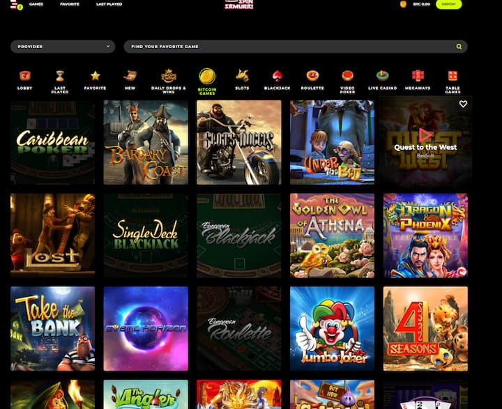 O bom lado do spin samurai casino é que eles oferecem uma variedade interessante de Jogos de cassino online, incluindo jogos de mesa clássicos, Mesas de cassino ao vivo, e Máquinas de caça -níqueis de bitcoin famosas. Eles, é claro, têm um ótimo relacionamento com Provedores de software de cassino Para que eles possam oferecer os slots mais recentes e a experiência de jogos de cassino que você deseja ter.