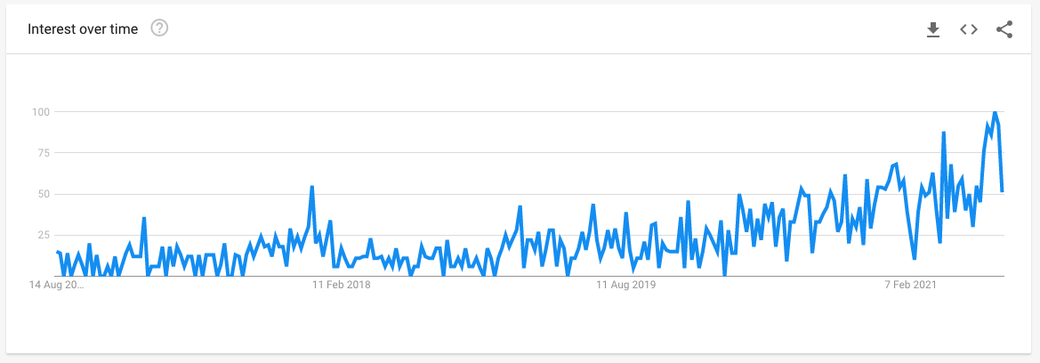 Uma coisa é certa, as tendências do eSports, de acordo com o Google Trends, mostraram um aumento de popularidade um tanto estável ao longo dos anos, mas o jogo de criptografia flutua pelo valor do Bitcoin.