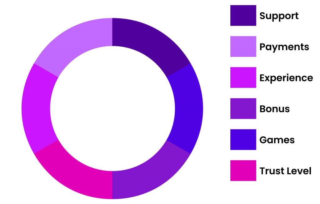 A resposta a essa pergunta aparentemente complexa é, na realidade, bastante simples. Nosso sistema de classificação consiste em pontos que podem ser adicionados ou deduzidos, dependendo da qualidade do serviço. Como você verá no gráfico abaixo, 8 categorias no total pode somar os pontos e a pontuação geral do cassino. No entanto, há um que pode deduzir pontos.