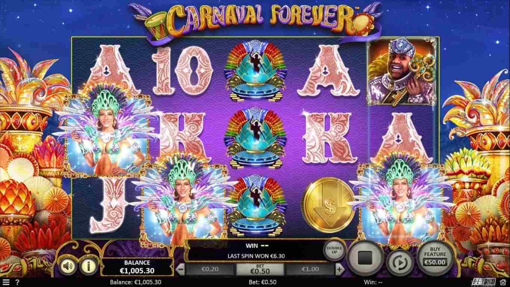A volatilidade do Carnaval Forever está definida em variação média. Isso impliPT que você pode esperar algumas vitórias no jogo, mas o valor da vitória pode não ser tão alto. Novamente, tudo isso é teórico e as coisas podem se tornar completamente diferentes quando você joga o jogo de verdade.