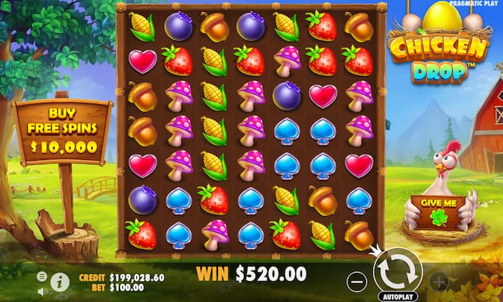 A peça pragmátiPT nos leva a uma fazenda rural onde as galinhas literalmente governam o poleiro. O frango Drop é um slot recente do provedor de jogos, onde os símbolos relacionados à fazenda preenchem os rolos. O jogo segue um Layout de grade de 7 × 7 e depende de um Cluster paga mecâniPT de vitória em vez de linhas de pagamento padrão. Além disso, o slot tem vários recursos interessantes, como giros gratuitos, símbolos de atualização e vitórias. Portanto, entrar nesse curral é imperativo para um melhor vislumbre do jogo.
